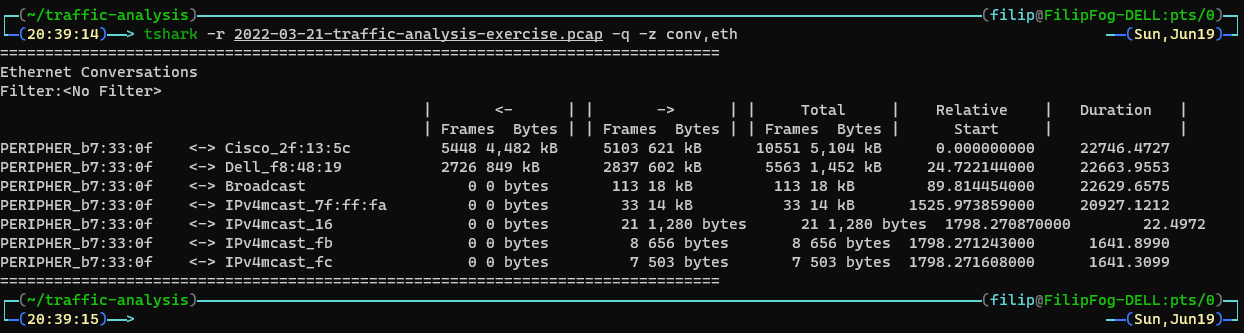 tshark -r 2022-03-21-traffic-analysis-exercise.pcap -q -z conv,eth