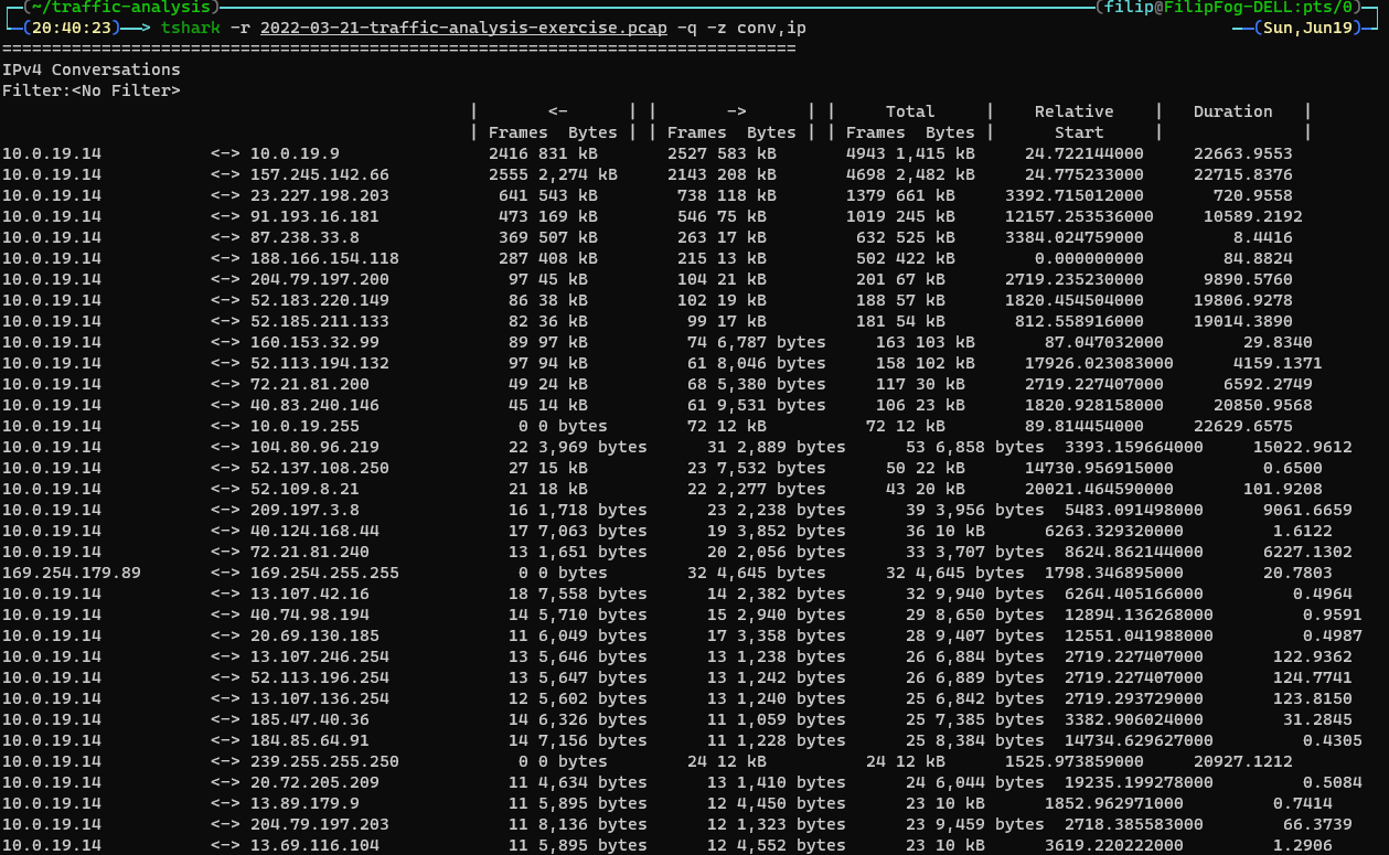 tshark -r 2022-03-21-traffic-analysis-exercise.pcap -q -z conv,ip