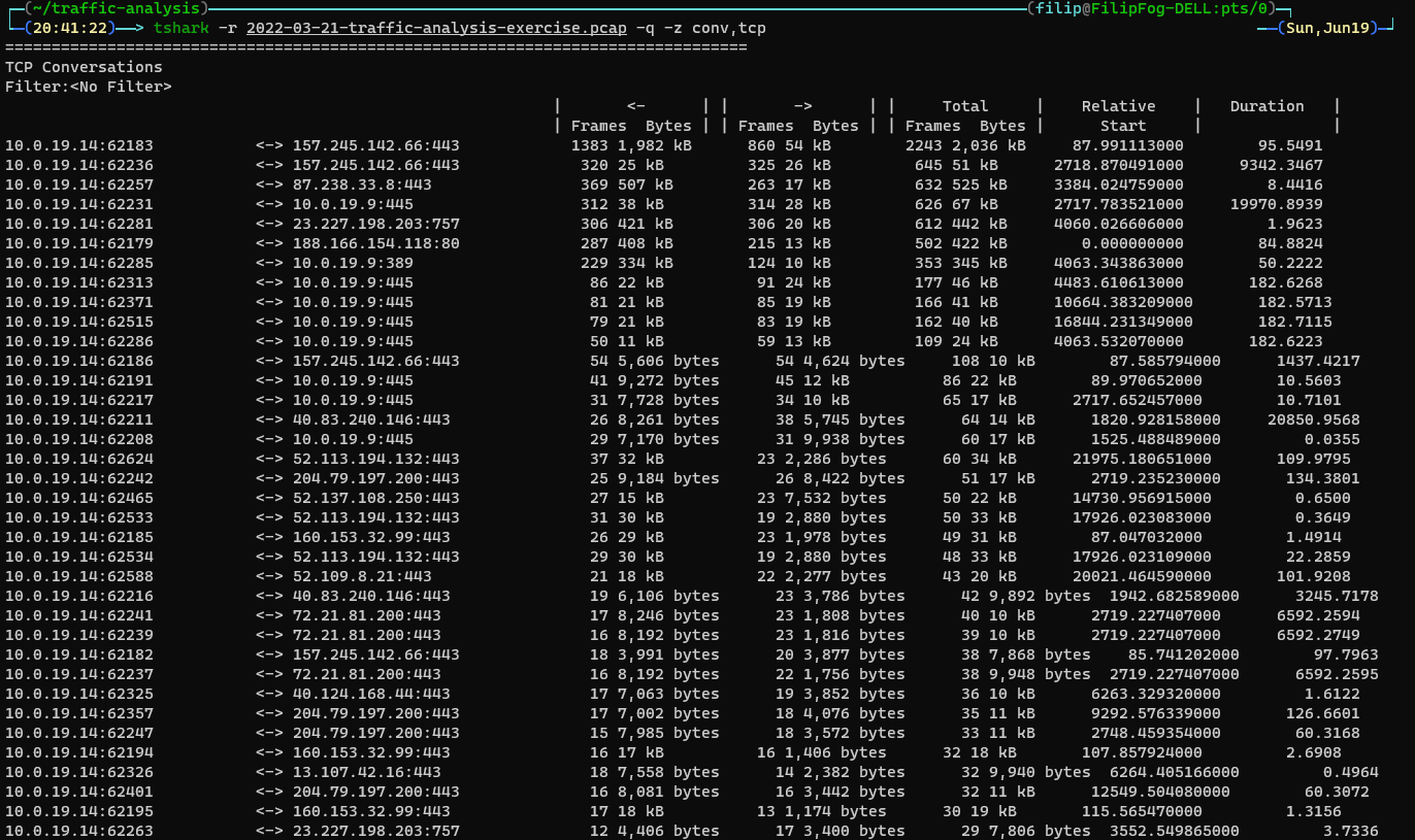 tshark -r 2022-03-21-traffic-analysis-exercise.pcap -q -z conv,tcp