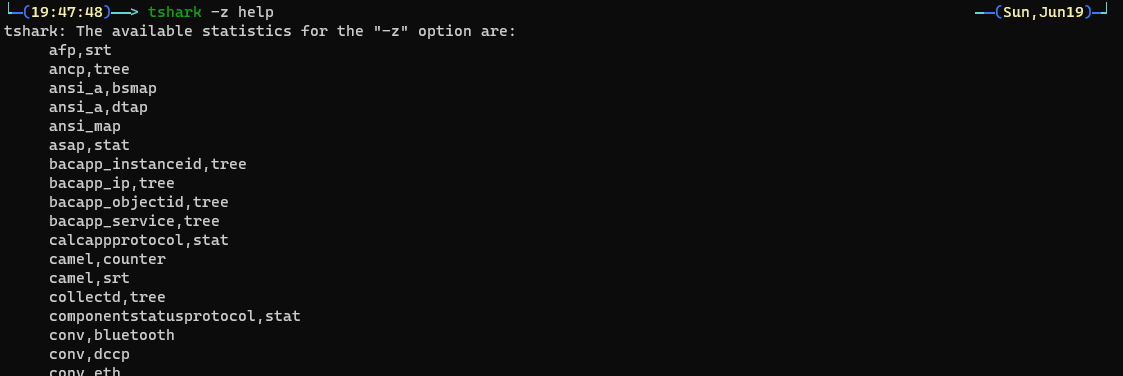 -z <statistics> Use the -q option if you’re reading a capture file and only want the statistics printed, not any per-packet information.